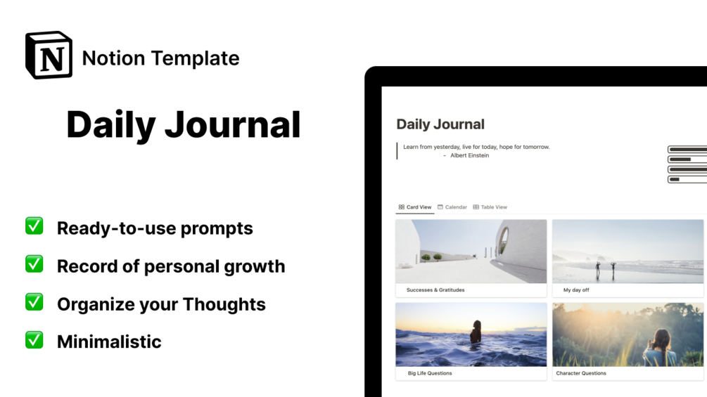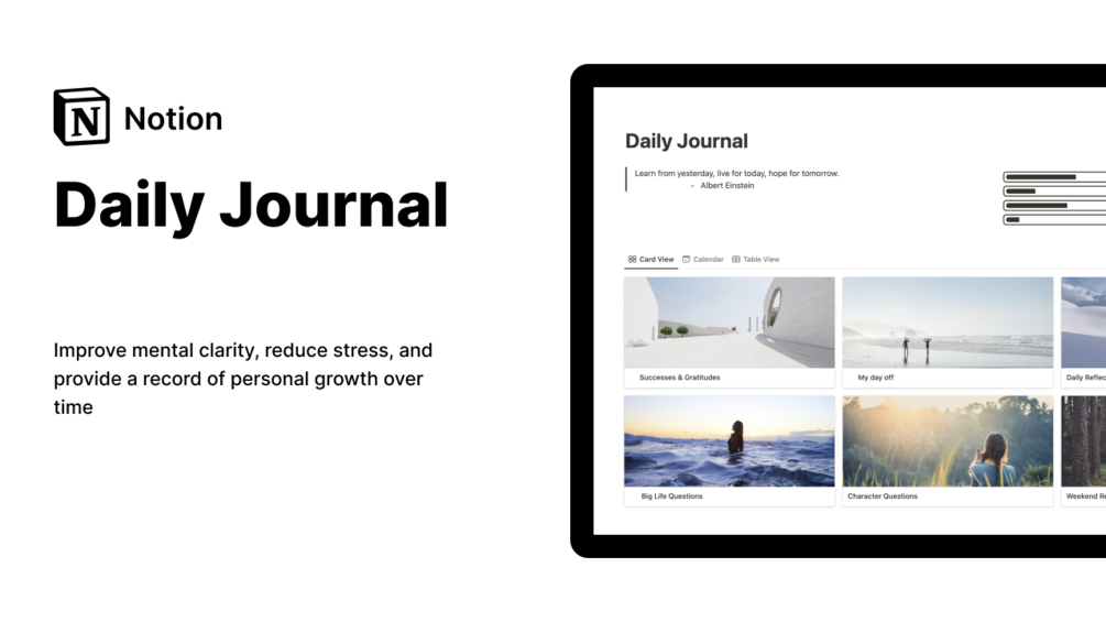 The Daily Journal Template is a comprehensive Notion template to assist you in your self-improvement journey.